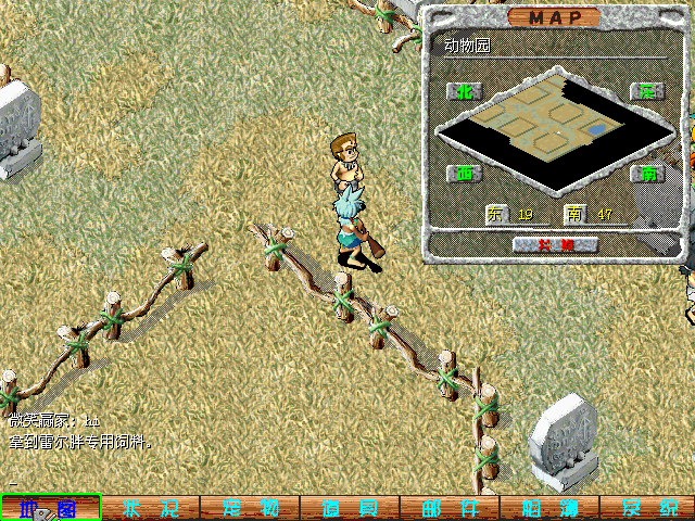 a、进动物园,来到(19,47)向布伊太郎说话拿到“雷尔胖专用饲料”